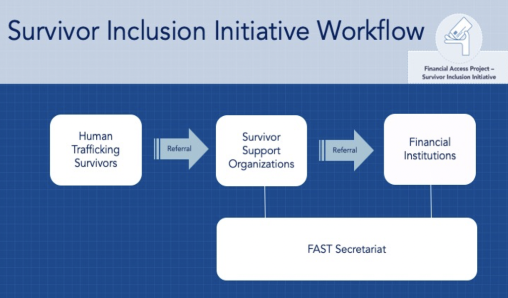 The Survivor Inclusion Initiative is a project of FAST, which aims to mobilize the financial sector against modern slavery and human trafficking. It launched in September 2019 in Canada, UK and the US and will expand to other jurisdictions in 2020-2021. The Survivor Inclusion Initiative brings together a dedicated coalition of financial institutions and survivor support organizations to facilitate survivor access to basic banking services, such as checking and savings accounts, and to help survivors’ financial recovery to become full financial participants in their communities.